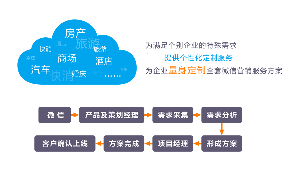 微信营销不仅仅是消息推送,我们可提供成套的微信营销服务方案,让您的微信公众号实现最大化的商业价值。